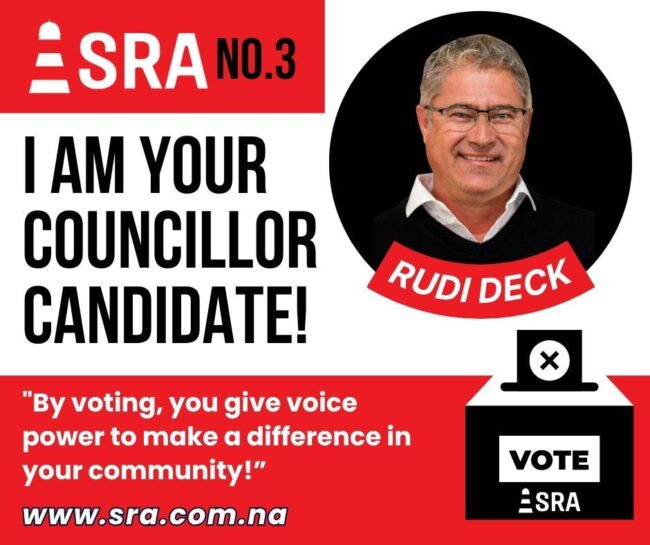 Rudi is a local Swakopmund business owner and is inspired to bring the practical perspective of an entrepreneur to improve the town’s management and governance.